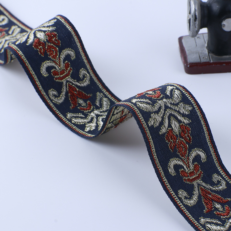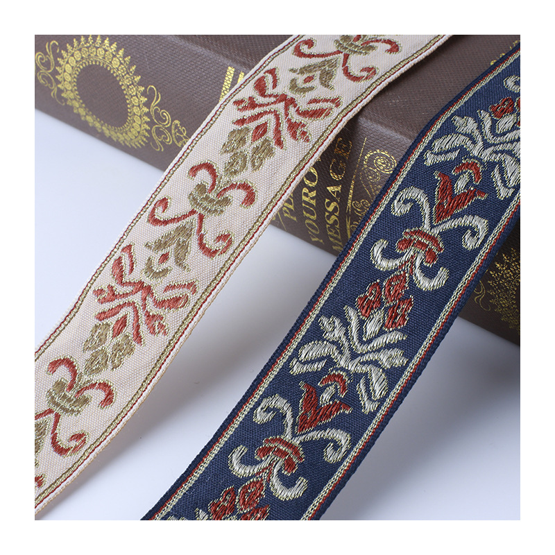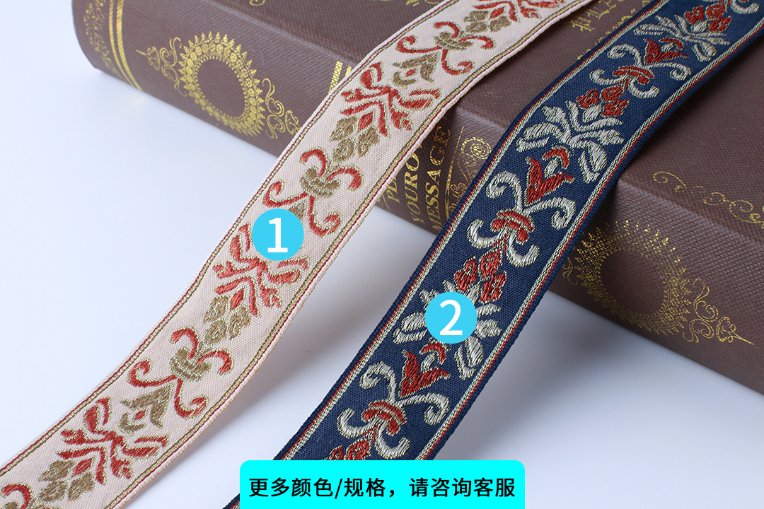 描述:民族风汉服装饰织带 旗袍包边提花织带辅料 古风水花纹刺绣织带 材质:涤纶 适用范围:服装