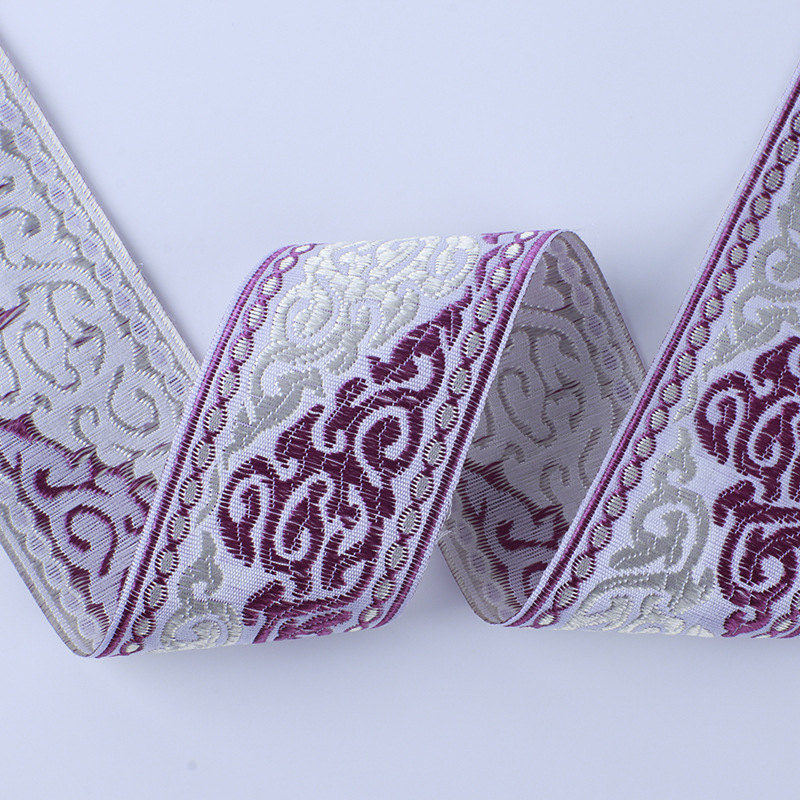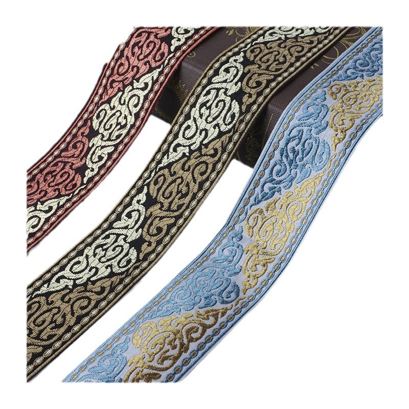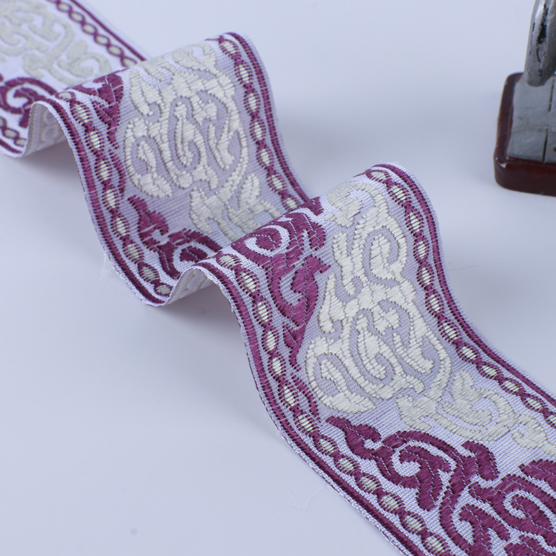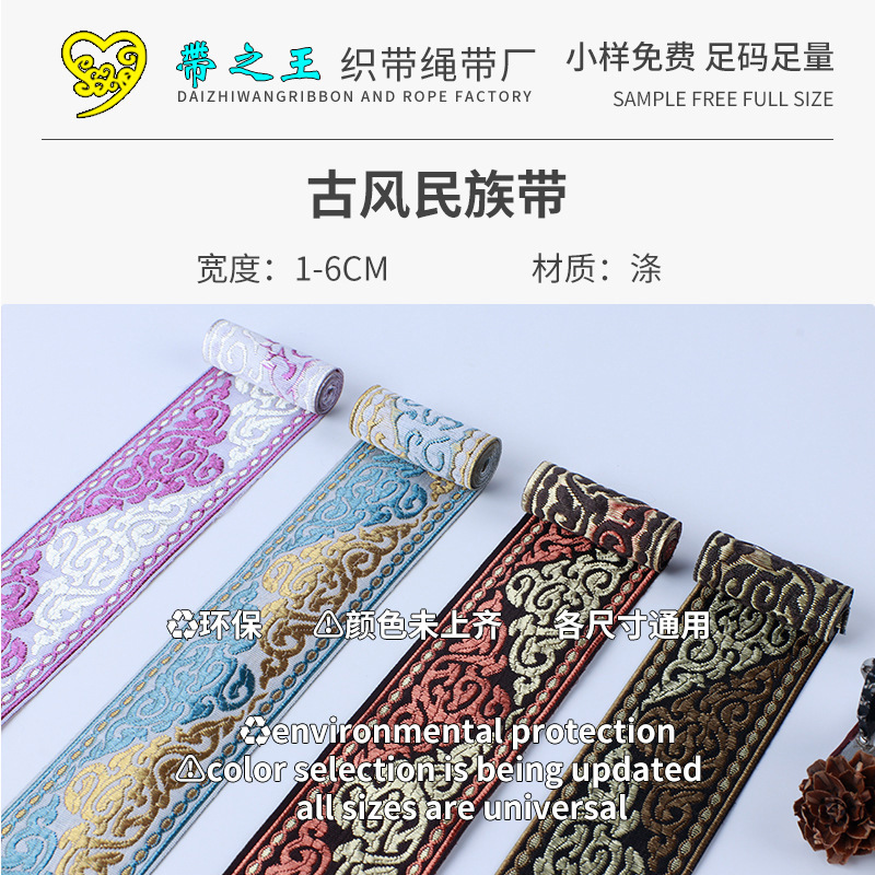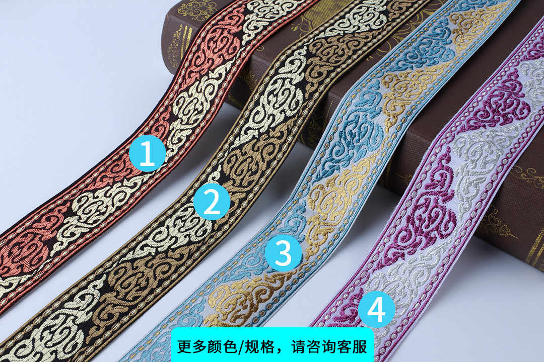 描述:4cm民族古风提花织带 汉服窗帘绑带中式织带 复古花边刺绣织带 材质:涤纶 适用范围:服装