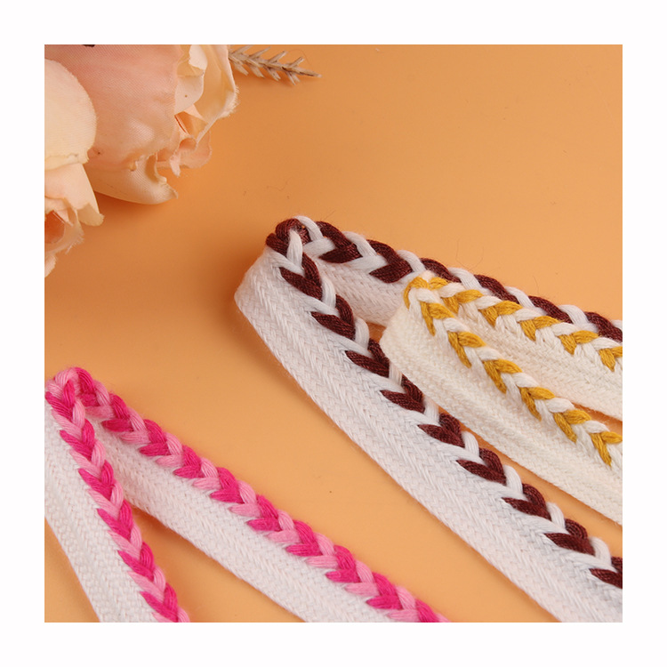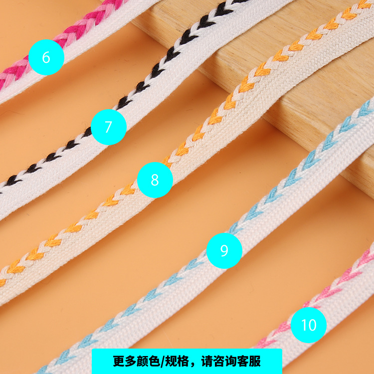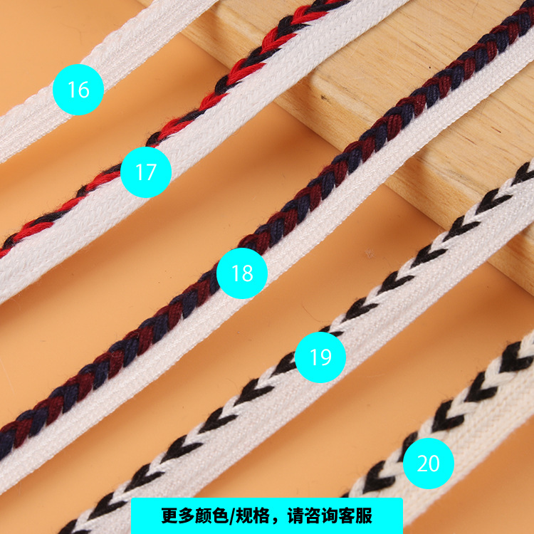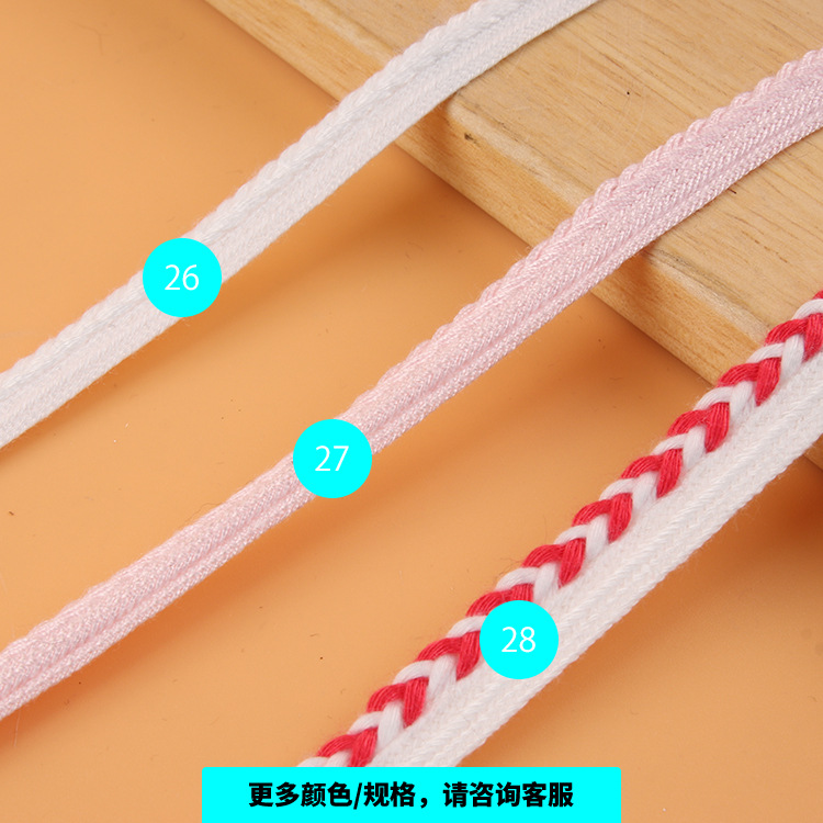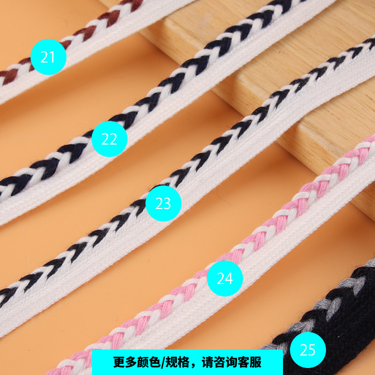 描述:人棉子母带麻花纹编织带 人字纹间色包边织带 家纺布艺沙发滚边条 材质:涤棉 适用范围:服装
