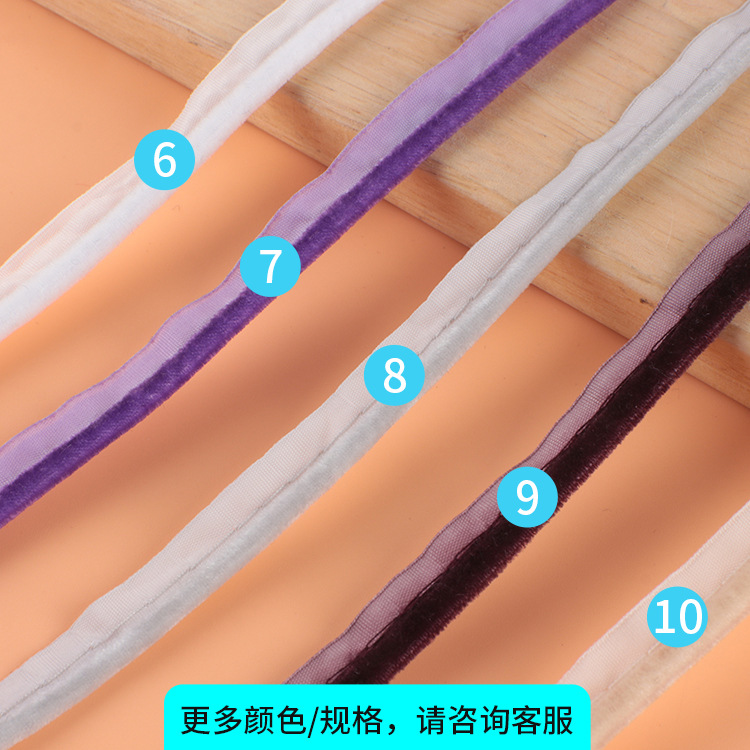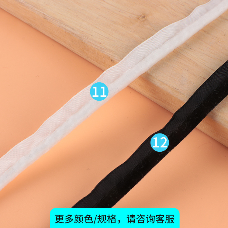 描述:丝绒带子母带包边织带韩国绒子母带雪尼尔斜条出芽条辑边嵌条夹边 材质:涤纶光丝 适用范围:服装