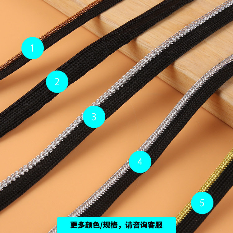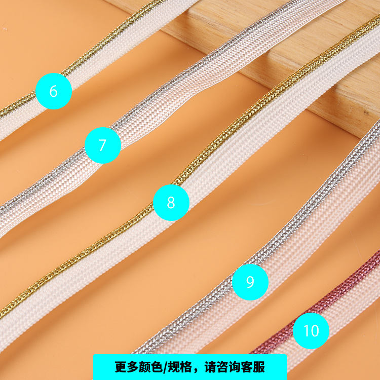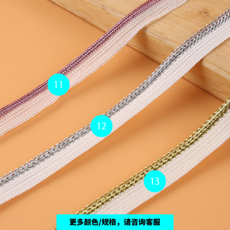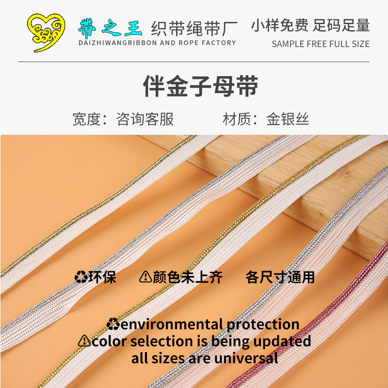 描述:伴金子母带 金银丝织带 家居服睡衣装饰花边织带 箱包鞋材包边条 材质:金银丝 适用范围:服装