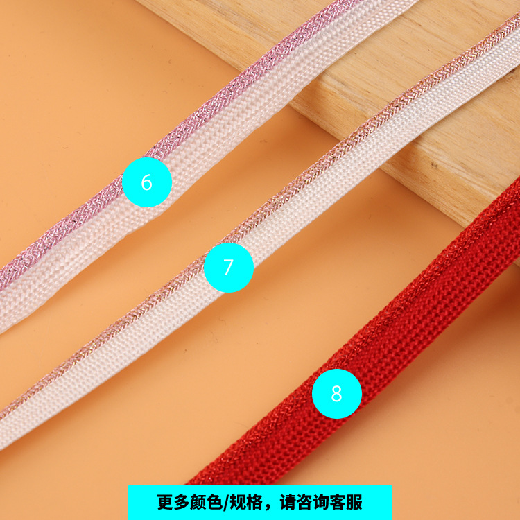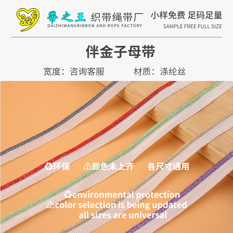 描述:牙条子母带 家纺涤纶丝镶边包边条 沙发嵌边带 卫衣装饰织带辅料 材质:涤纶丝 适用范围:服装