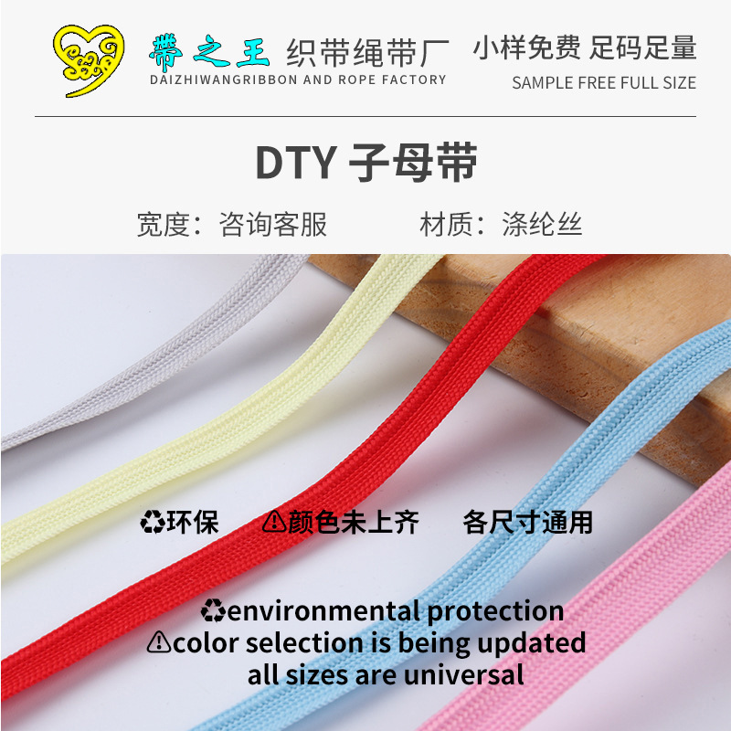 描述: 涤纶丝运动服包边条布料 家纺DTY子母带辅料 服装滚边编织带