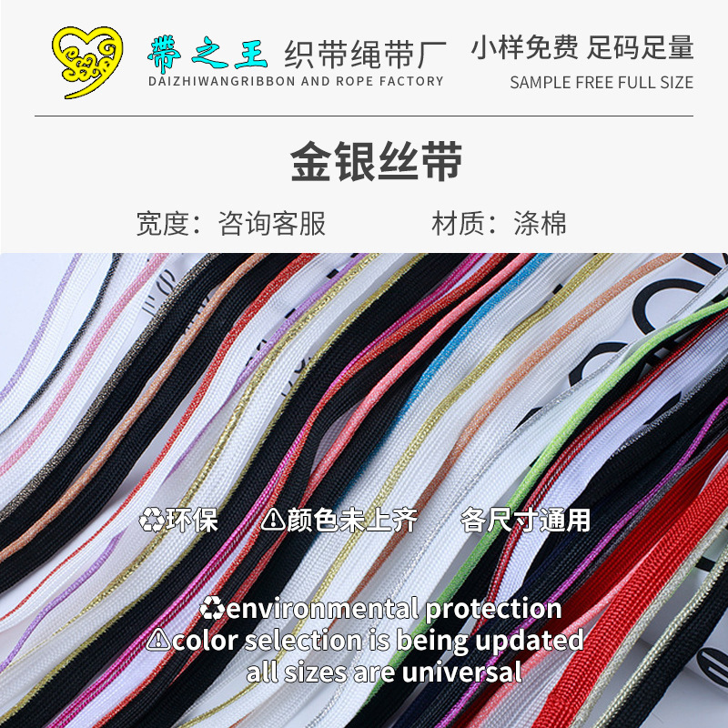 描述:家纺服装衣领帽子包边带 金银丝滚边编织镶边带 L子母带辅料现货 材质:涤棉 适用范围:礼品包装,衣领,服装